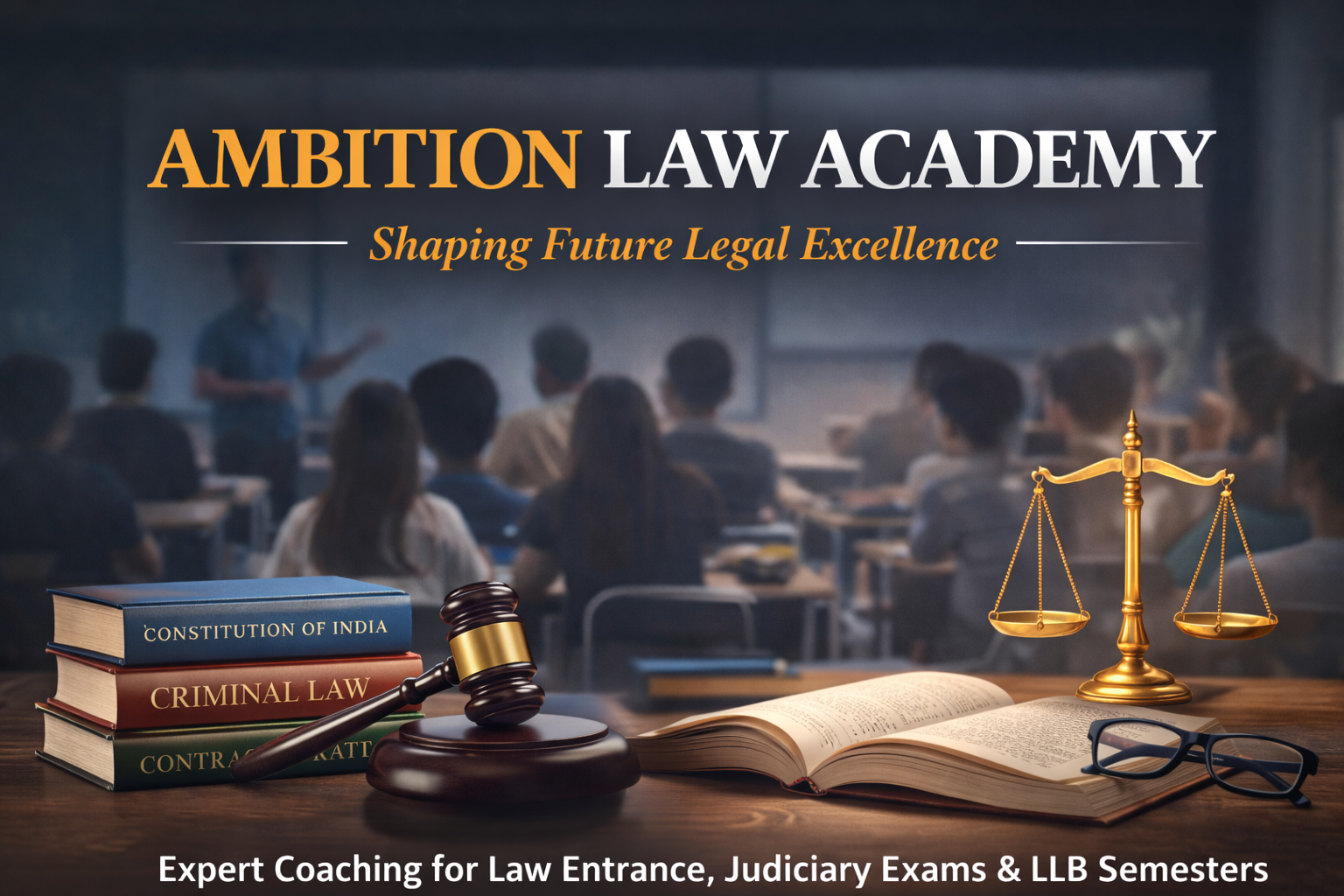 Ambition Law Academy is known for law entrance coaching, judiciary preparation, and law college semester guidance with a strong focus on concepts.