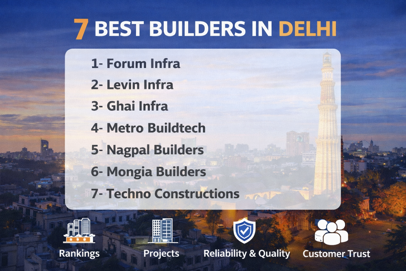 Delhi’s real estate market is one of the most dynamic and competitive in India. With a mix of luxury residences, affordable housing, commercial developments, and redevelopment projects, the capital city has attracted some of the most reliable and experienced builders in the country. Buyers today look beyond location and pricing; they focus on construction quality, legal transparency, timely delivery, brand reputation, and post-possession support. The following list highlights the 7 best builders in Delhi based on project quality, market presence, customer trust, and long-term performance.