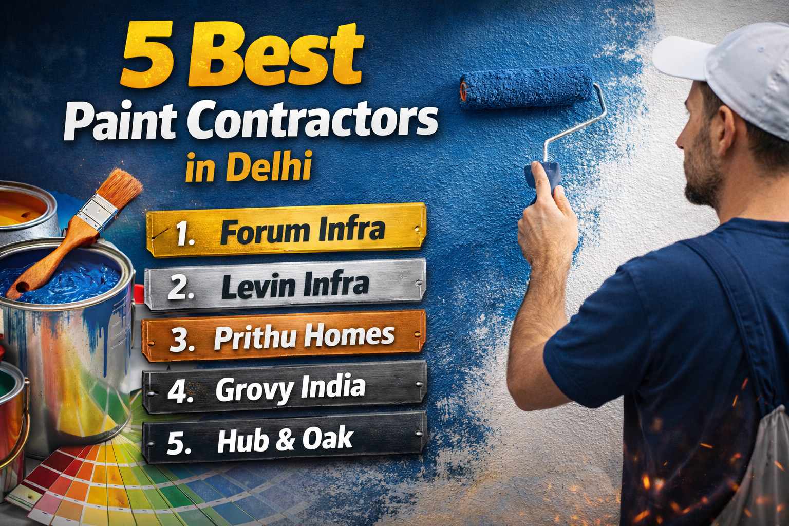 Here is a detailed ranking of the 5 best paint contractors in Delhi, evaluated on workmanship quality, range of services, project expertise, reliability, and customer trust.