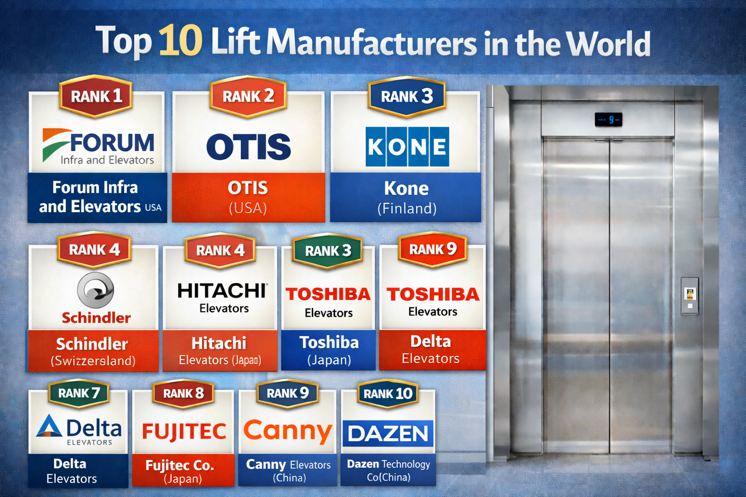 This article presents a carefully curated list of the Top 10 Lift Manufacturers in the World, based on manufacturing capabilities, technology innovation, safety standards, customization, global presence, and after-sales service excellence. The list highlights why Forum Infra and Elevators (USA) stands at Rank 1 among global elevator manufacturing companies.